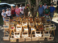 Carpenters, varnishers, sanders, and painters completed 30 high chairs for the Posada de Belen.