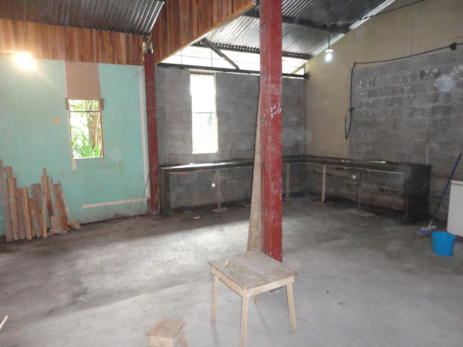 Today I want to share with you about the progress we've made on construction at the Pentecostal church this year. The plan is to add a second story to the back part of the building to give the church more space for its feeding program. They've been feeding 50-60 kids in the Costa Rican summer months when kids aren't in school, but estimate the need to feed about 100. This project gives them the space to do that. Last year we dug and poured footers for the support columns. This year we welded the first part of the column up, demolished the stage in back, resurfaced and poured the floor, and installed a concrete counter top. It's about all we can do until the rain stops for the year and we can remove the roof for the second story. Thank you to all of you who have been a part of this project! I know the people of the Iglesia Nuevo Pacto are very grateful to have this new space for ministry.